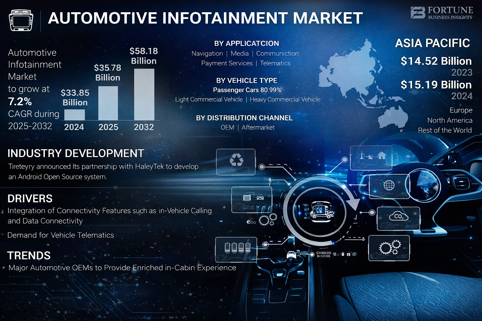 To give you a quick visual understanding of how rapidly the in-vehicle infotainment space is expanding, here’s an excellent infographic showing global market size, key segments, and upcoming trends: