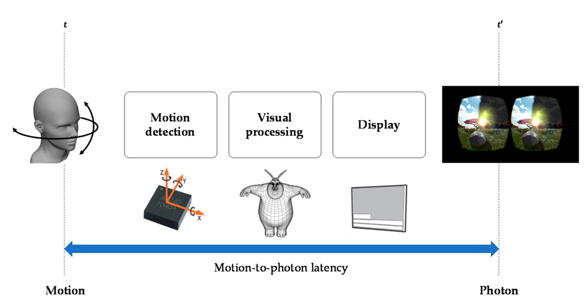 To better visualize where delays occur in an AR/VR system, here’s a widely referenced infographic that breaks down the motion-to-photon pipeline and explains how latency accumulates through sensing, tracking, rendering, and display stages: