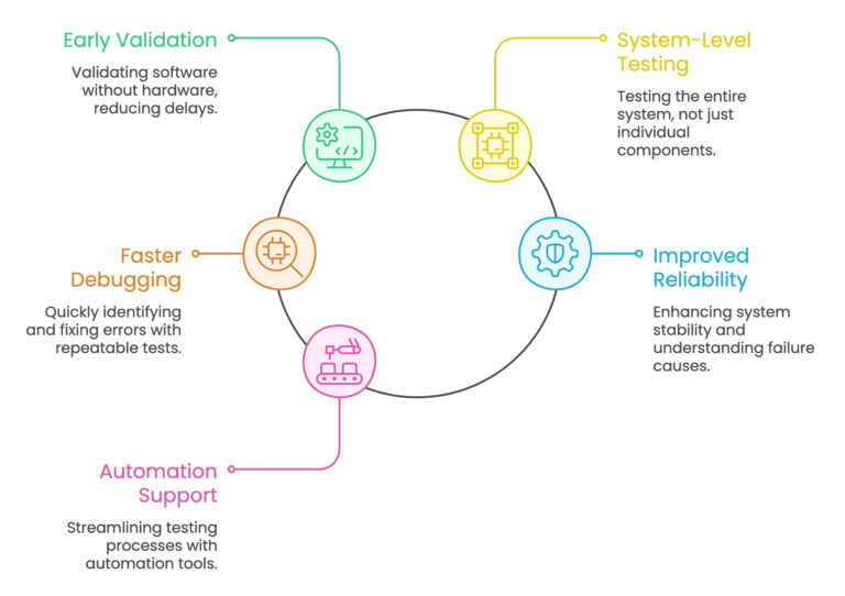 Embedded systems today are deeply interconnected. Firmware interacts with hardware, networks, cloud platforms, and user interfaces, often all at once. Relying solely on physical testing introduces several challenges: